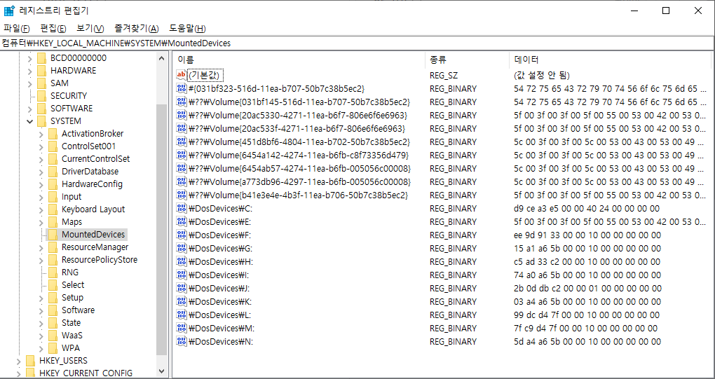 HKEY_LOCAL_MACHINE\SYSTEM\MountedDevices