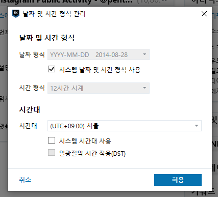결과 분석이 완료되었으면 우측 하단에서 먼저 시간대를 국가에 따라서 바꿔줍니다.