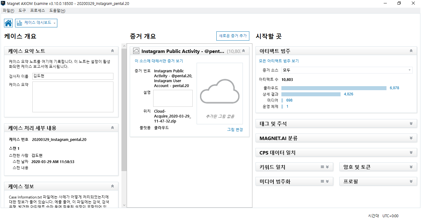 오늘은 Cloud 포렌식 중에서 Instagram 포렌식을 다뤄보도록 하겠습니다. 먼저 때깔좋은 Magnet Axiom을 실행시킵니다. 새 케이스 생성을 눌러줍니다. 필자는 케이스 번호에 날짜와 포렌식 유형 그리고 사용자..