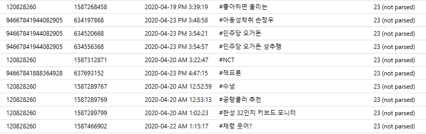 23 (not parsed)로 메시지 유형이 출력됩니다.