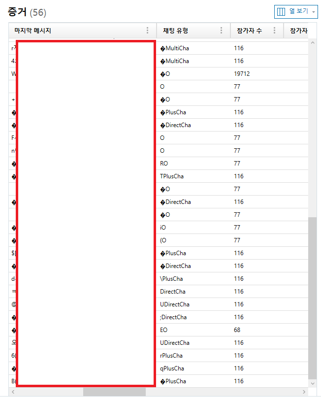 메시지가 가려진 경우 메시지 유형 칼럼이 Attachment로 변경됩니다.
