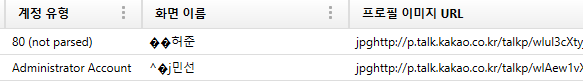 먼저 사용자 ID, 계정 유형, 화면 이름, 프로필 이미지 URL, 상태 메시지, 전화번호, 사용자 이름, 애칭, 숨김, 즐겨찾기, 링크 ID 등을 수집하고 있습니다.