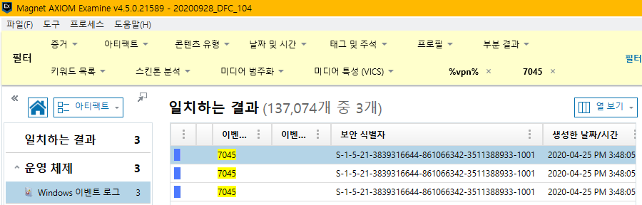 키워드에 %vpn%과 7045를 넣어준다.