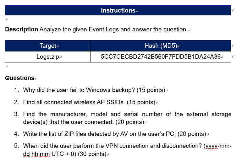 5. When did the user perform the VPN connection and disconnection? (yyyy-mm-dd hh:mm UTC + 0) (30 points)