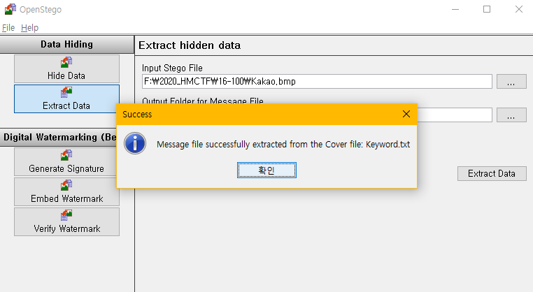 바로 OpenStego 스테가노그래피 도구를 사용한 것이다. 바로 OpenStego를 통해서 추출한다.