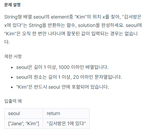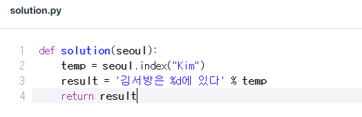 문제에서는 리스트를 주어지고, 그 리스트 안에는 무조건 김서방이 존재한다고 한다.