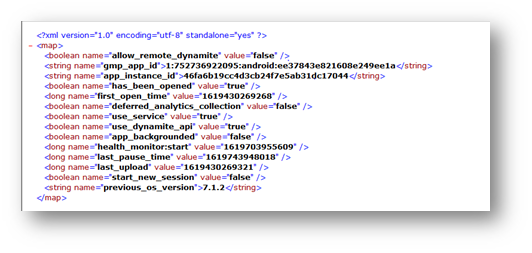 게임들의 최초 실행 시간을 확인하기 위해서 com.google.android.gms.measurement.prefs.xml 파일을 확인한다.