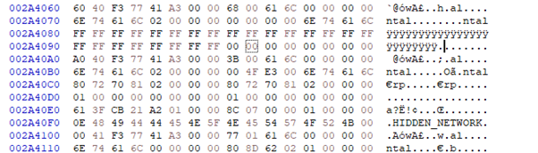 [그림 9, 10]은 메모리 파일의 HIDDEN_NETWORK를 검색했을 때 나온 결과값이다.