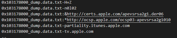 String Search를 통해서 URL 주소들을 모두 뽑아 봤을 때 사용자가 직접 엑세스 하지 않고, 인증서 또는 통신을 위한 URL들을 제외시켜줘야한다.