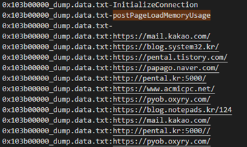 “postPageLoadMemoryUsage”를 통해서 주어진 이미지에서 발견된 북마크들을 정리하면 다음 표와 같다.