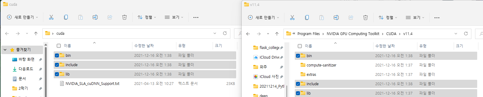이렇게 CUDA Tool Kit 과 cuDNN 작업을 마쳤다면, CUDA 설치는 완료 되었습니다.