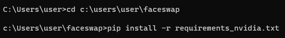 faceswap 에 필요한 외부 모듈들을 다운 받기 위해서 pip install -r 을 통해서 진행합니다.