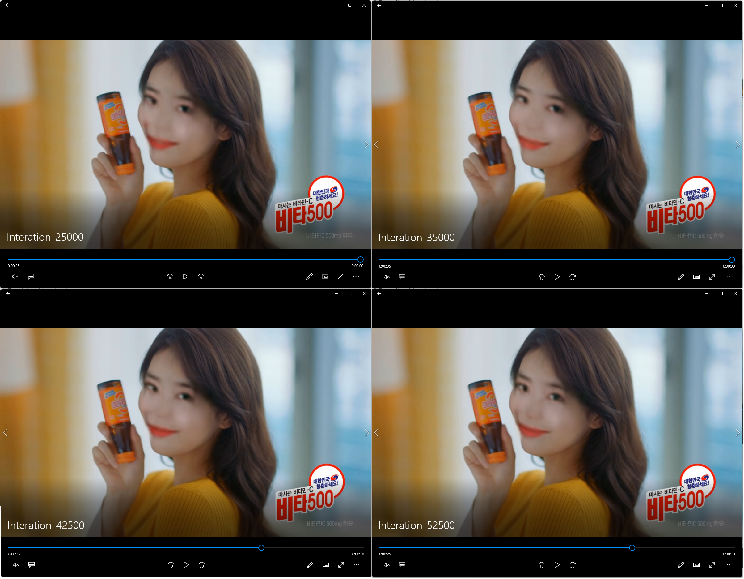아래 사진은 각각 Iterations가 25000 ~ 52000 학습을 진행한 일부 결과물이다.