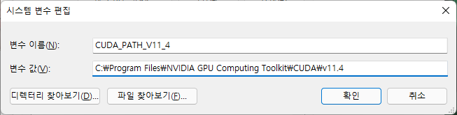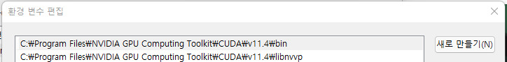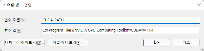 CUDA 11.4 버전을 설치가 완료 되면, 환경변수가 제대로 설정되었는지 확인해야합니다.