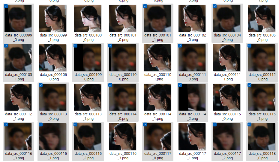 위 그림 18과 같이 불필요하거나, 다른 얼굴이 인식된 사진을 모두 삭제합니다. src와 dst 둘다 동일하게 삭제합니다.
