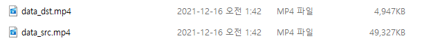 필자의 경우, 미리 파일 명에 src와 dst를 통해서, 대상 얼굴이 있는 동영상과, 합성을 할 동영상을 구분했습니다.