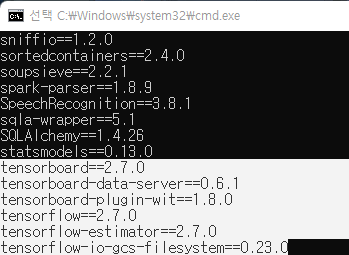 이제 tensorflow를 설치하겠습니다. CMD 또는 다른 쉘을 통해서 다음과 같이 입력합니다.