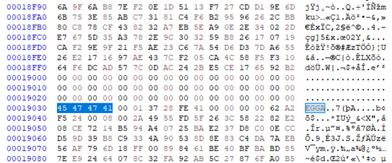 해당 파일은 각각 100kb 로 분할된 것을 이루어, 은닉된 파일은 100~200kb 로 가정하고 확인하면 발견 할 수 있다. 해당 파일의 시그니처가 다른 egg 파일과 동일하게, EGGA 임을 확인 할 수 있다. 해당 ad file 에는 2개의 파일로 은닉된 것을 확인 할 수 있다.