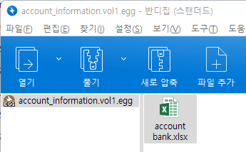 분할 압축에서는 일부 egg 파일이 사라져도 1번파일에는 해당 압축에 어떠한 파일이 있는지 확인 할 수 있다. 해당 압축파일에는 account bank.xlsx 파일을 확인 할 수 있다.