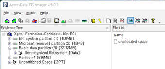 복구를 완료하고 FTK Imager을 통해서 확인한다.