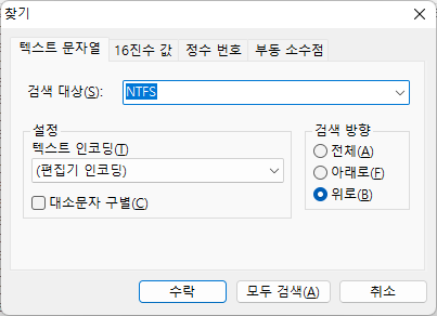 이 경우 파티션 4번의 시작 섹터에서 검색함으로 검색 방향을 “위로”로 지정해 주고 탐색을 진행해야한다.