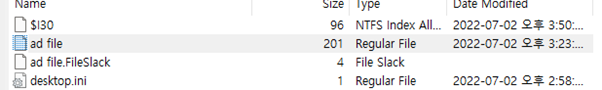 해당 파일은 각각 100kb 로 분할된 것을 이루어, 은닉된 파일은 100~200kb 로 가정하고 확인하면 발견 할 수 있다. 해당 파일의 시그니처가 다른 egg 파일과 동일하게, EGGA 임을 확인 할 수 있다. 해당 ad file 에는 2개의 파일로 은닉된 것을 확인 할 수 있다.