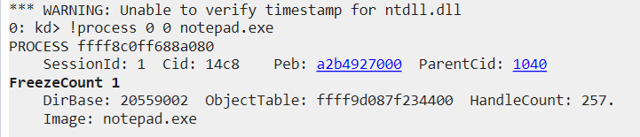 Guest환경에서 WinDbg - File - Attach to process 를 통해서 notepad.exe 를 불러온다.