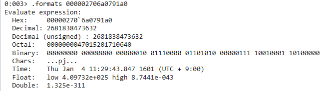 DirBase의 값이 변경되어서 4d7590002 로 다시 진행하며, 이진수 값을 ? 을 통해서 나타낸 값은 위와 같다.