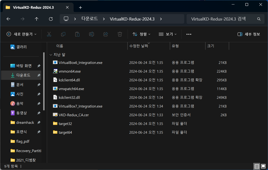 윈 10 부팅후, VirutalKD-Redux-2024.3 을 통해서 Guest에 붙여준다.