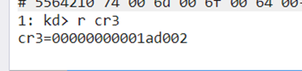 여기서 중요하게 봐야 할 내용은 DirBase이다. 이 값이 메모장의 CR3 값이다.