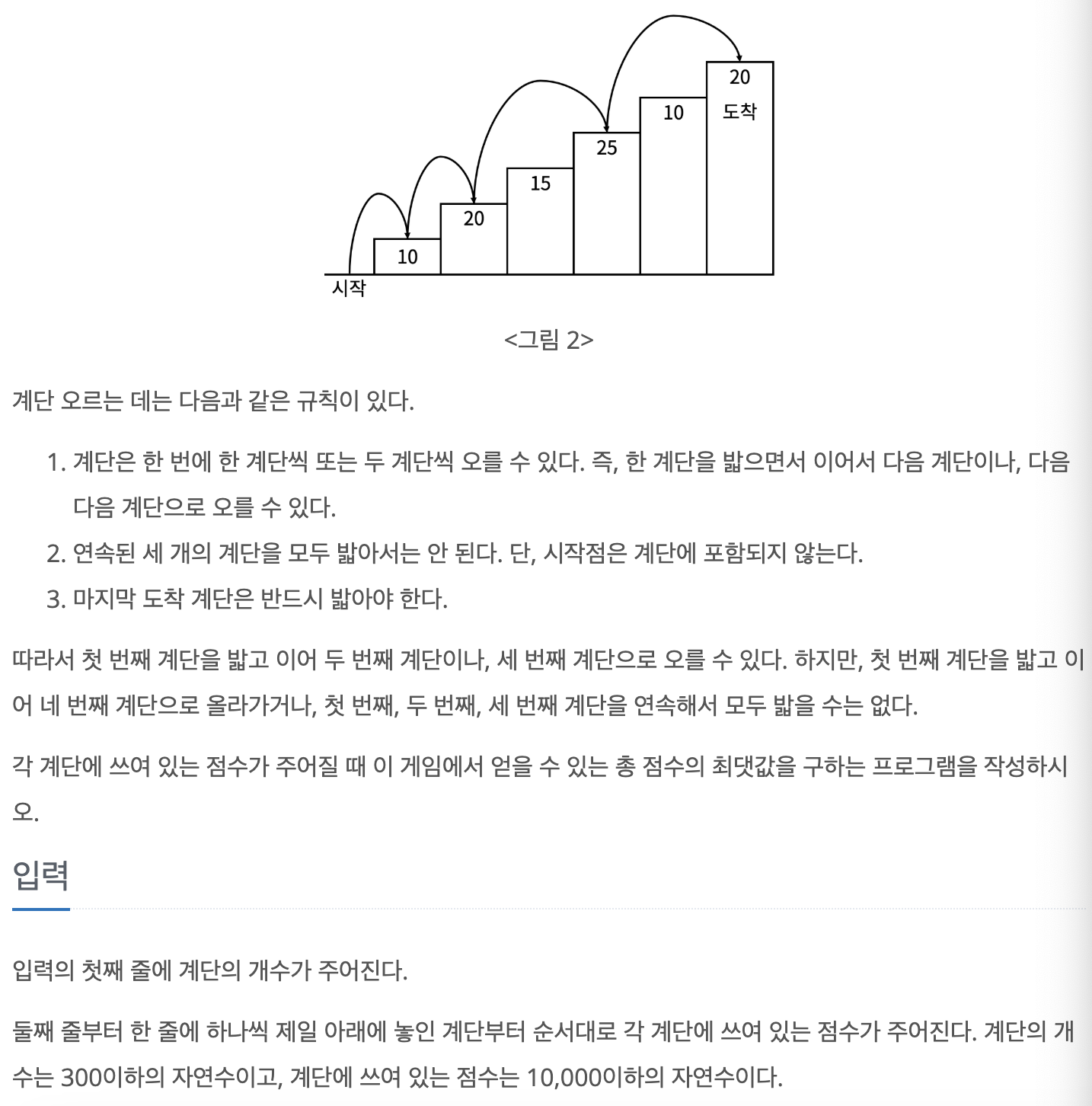 3. 계단은 한번에 한 계단 또는 두 계단씩 오를 수 있다.