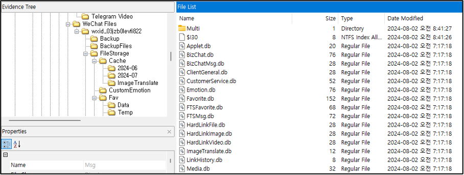 그림 25 FTK Imager을 이용한 WeChat Files 폴더 내 파일들