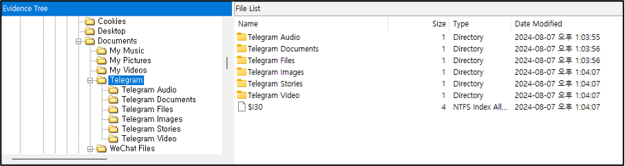 해당 폴더에서는 총 662개의 파일이 발견되었으며, 세부 내용은 [별첨 6 – Telegram 생성 파일 목록][1] 으로 첨부한다.