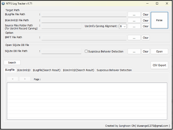 추출된 파일을 바탕으로 NTFS Log Tracker v1.71을 사용하여 로그파일을 추출해 분석을 진행한다.
