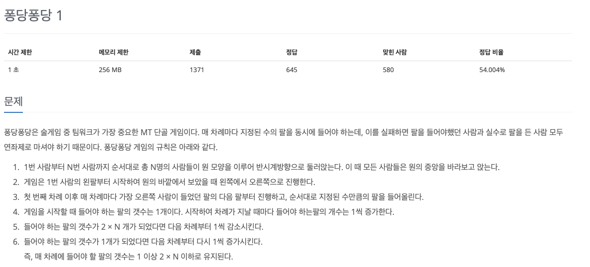 # 백준 17944 - 퐁당퐁당 1