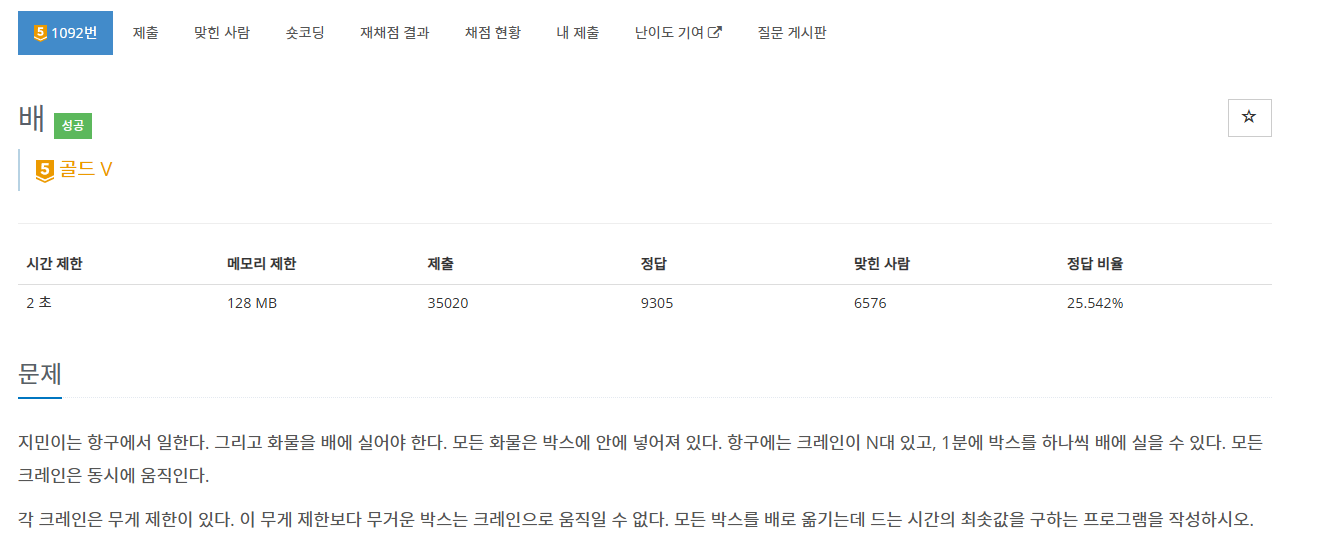 # 백준 1092 - 배