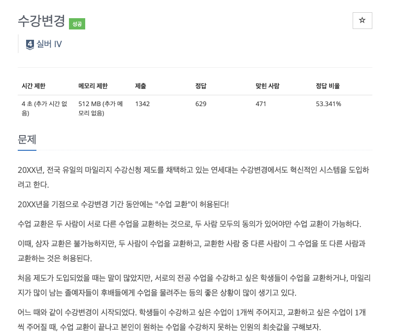 학생들은 강의를 교환할 수도 있지만, 모든 학생이 원하는 강의를 들을 수 없는 경우도 있다.