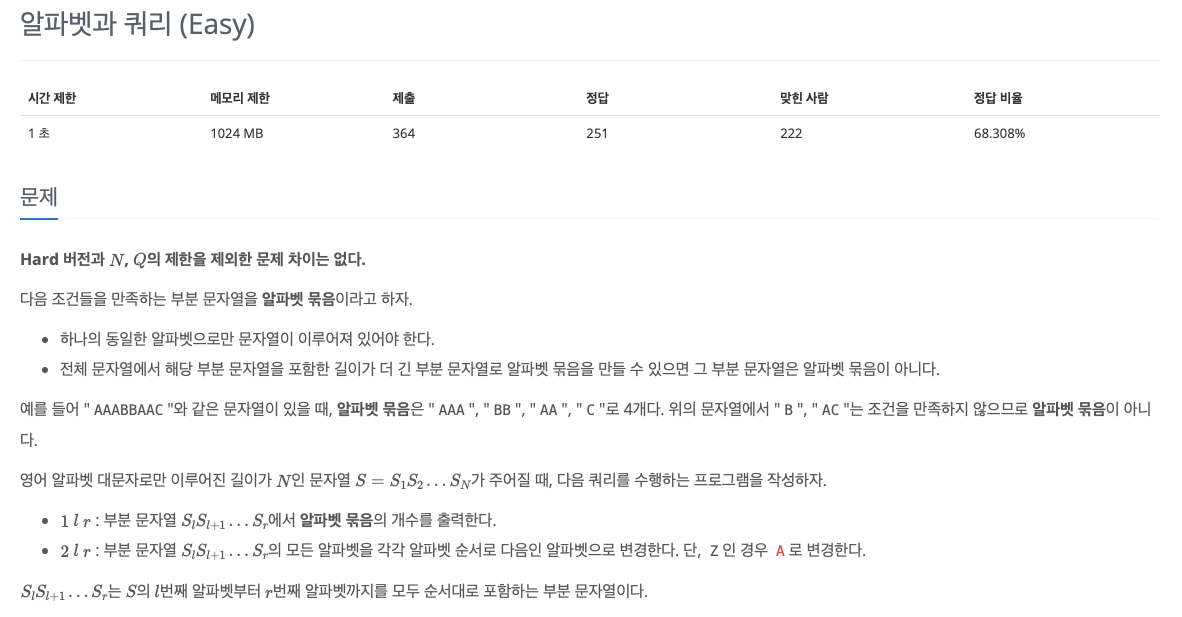 # 백준 31825 - 알파벳과 쿼리 (Easy)