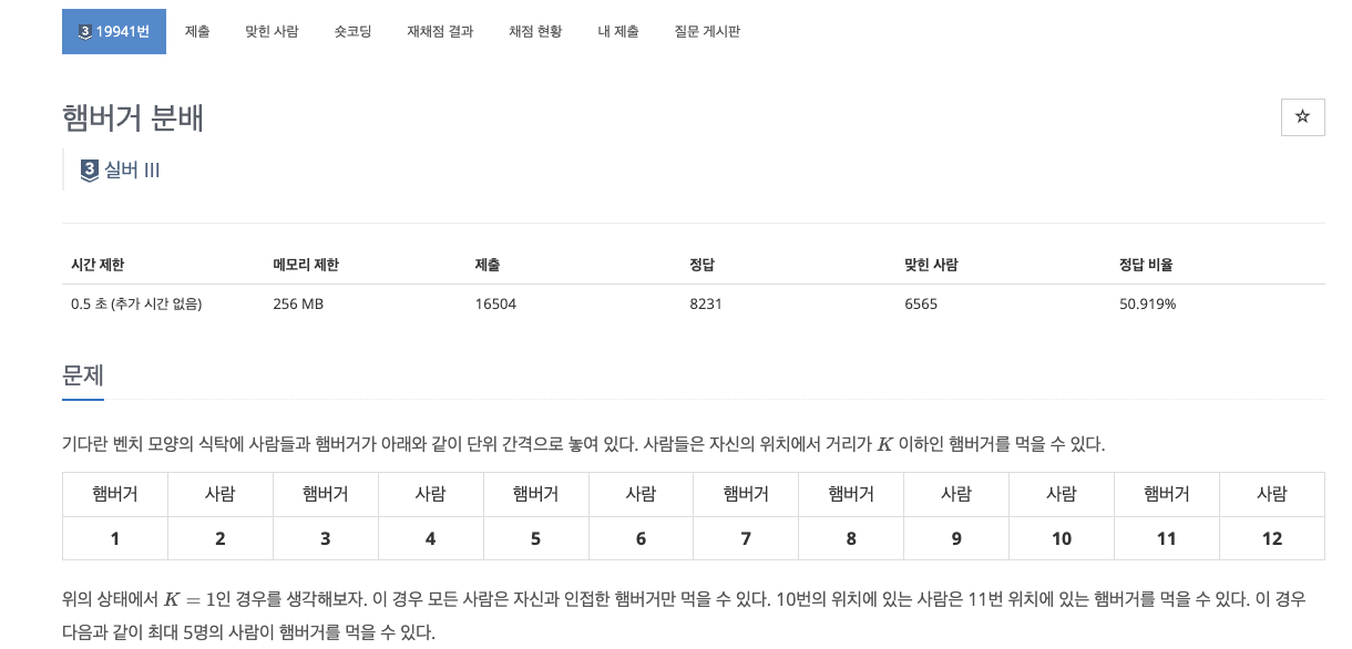 - 각 사람은 자신의 위치에서 왼쪽, 오른쪽 K칸 이내에 있는 햄버거를 먹을 수 있다.