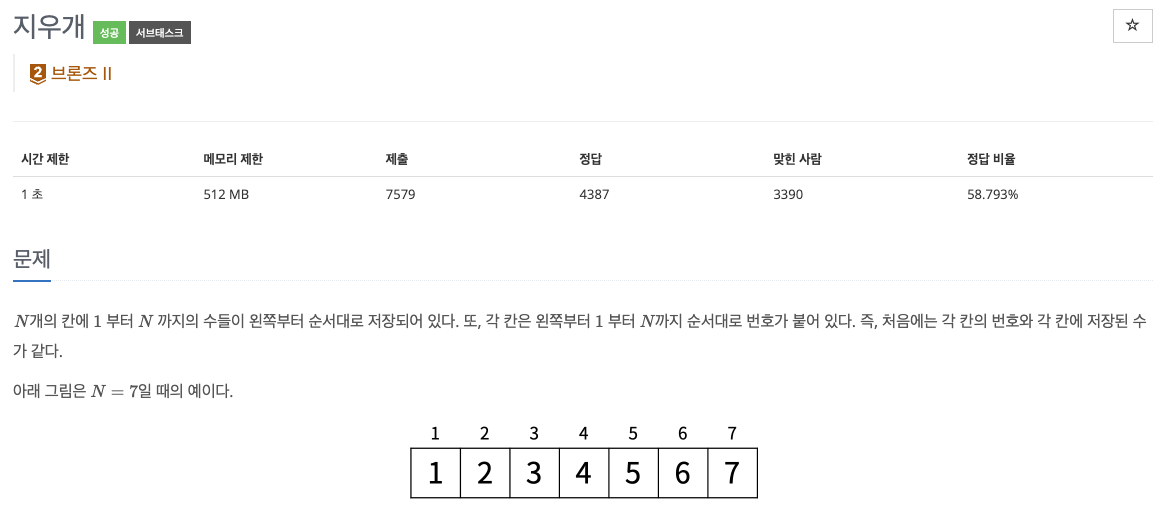주어진 N개의 숫자가 1부터 N까지의 정수로 구성된 큐에서 특정 규칙에 따라 제거되며 마지막 남는 숫자를 출력하는 문제이다.
