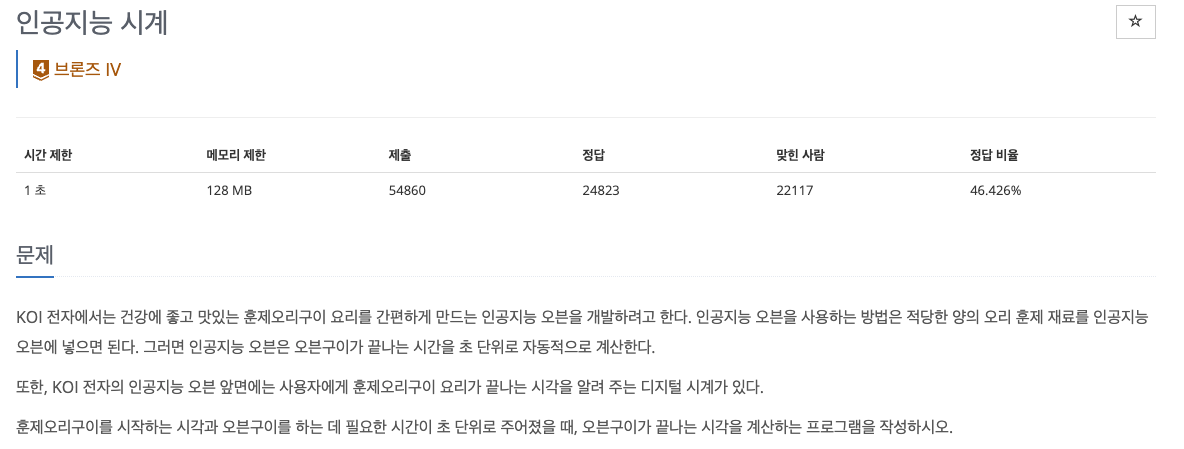그냥 단순히 수학 공식을 이용해서 풀려다가 어짜피 초를 입력 받기 때문에 초 단위로 증가시켜도 된다는 판단이 들은 문제이다.