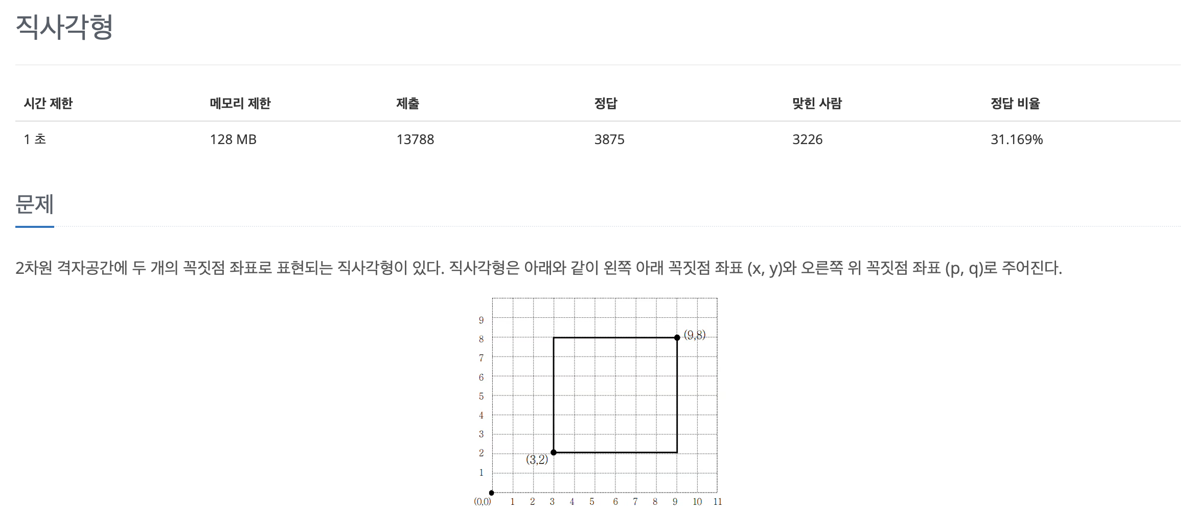 두 직사각형이 주어졌을 때, 겹치는 영역이 어떤 형태인지 판단하는 문제이다.