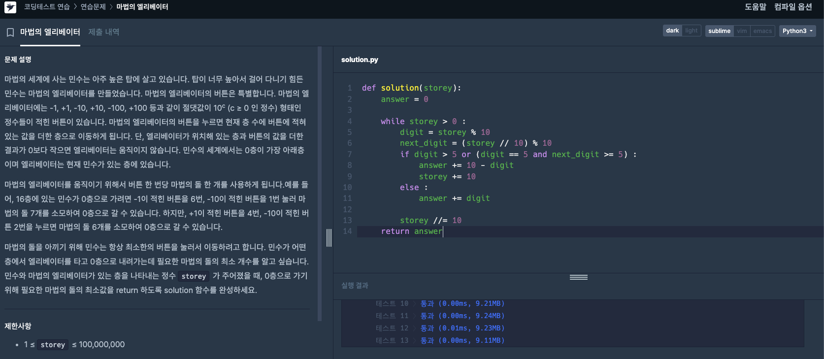 프로그래머스 - 마법의 엘리베이터 (파이썬)
