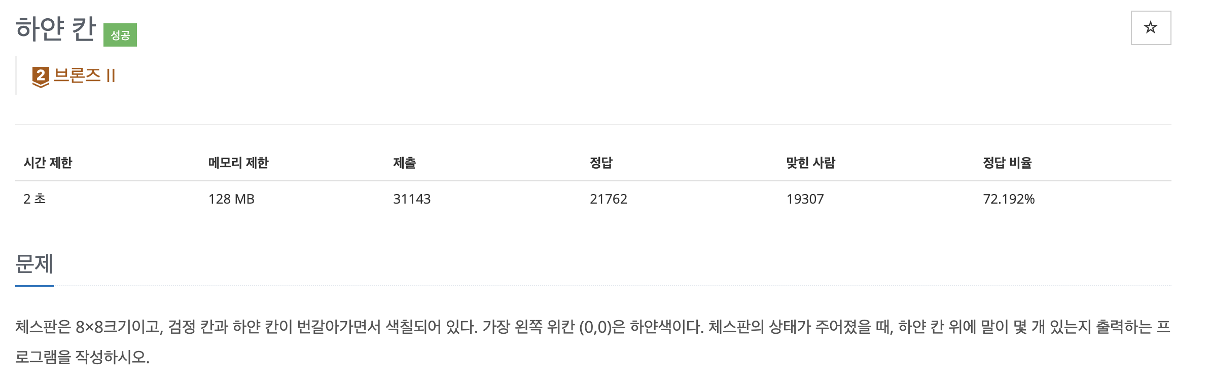 - 하얀칸인지 확인 : (i + j) % 2 == 0
