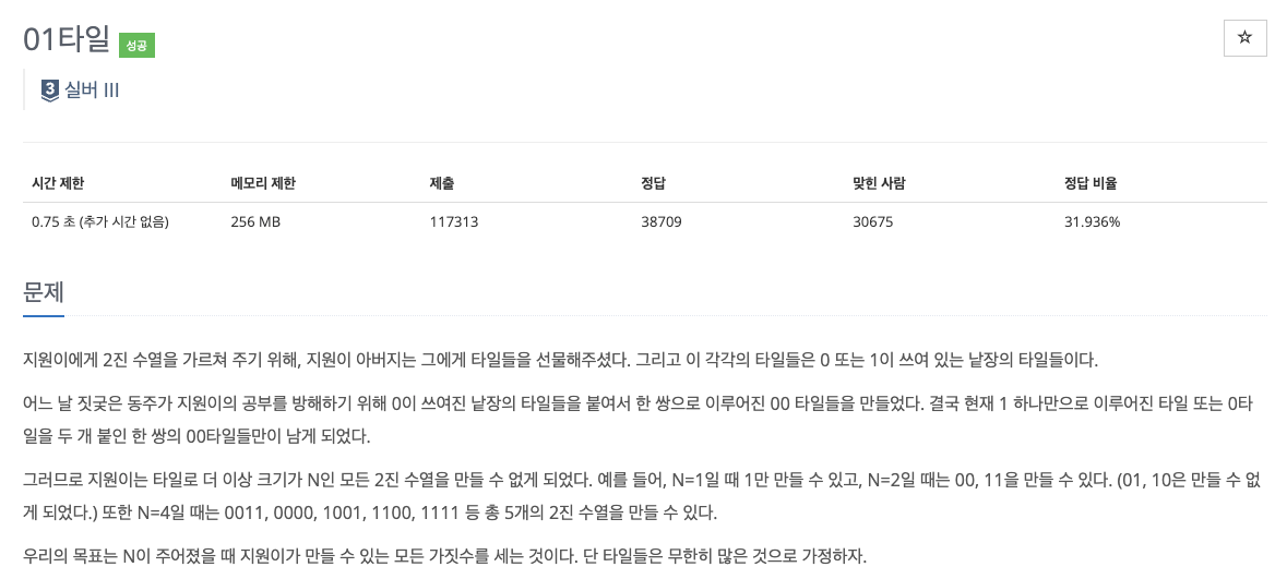 # 백준 1904 - 01타일