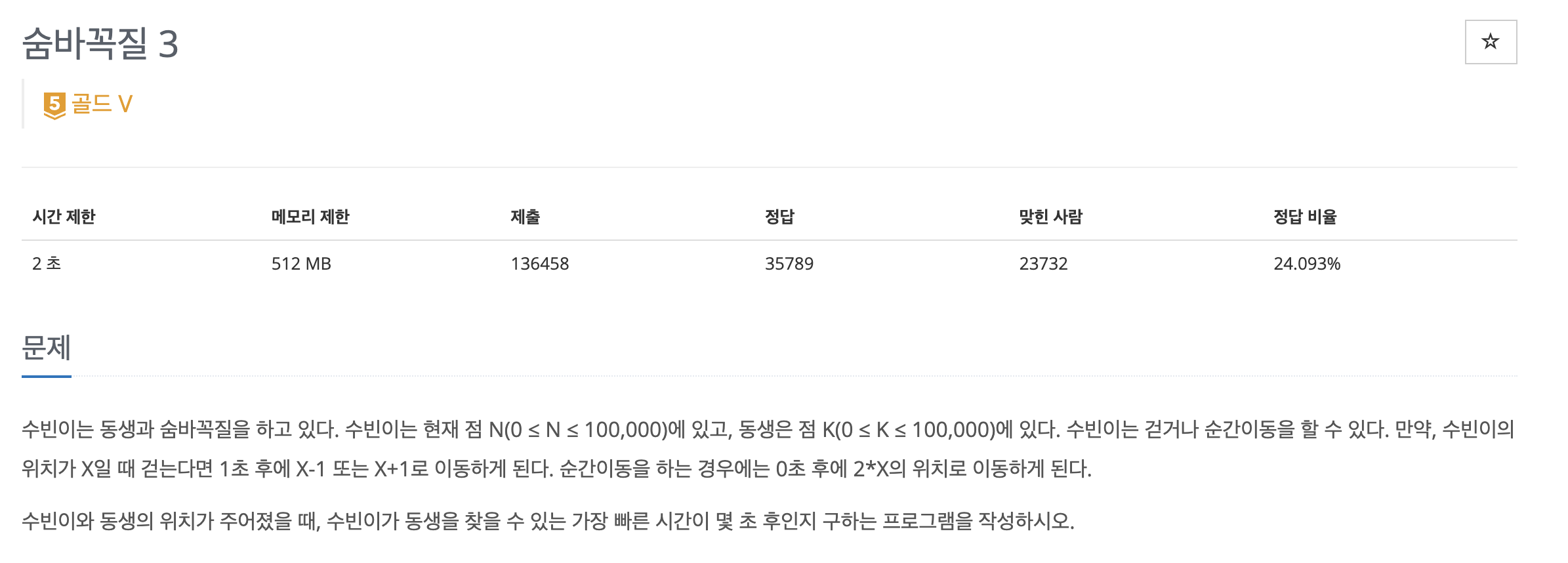 - 수빈이는 현재 위치 N, 동생의 위치는 K이다.