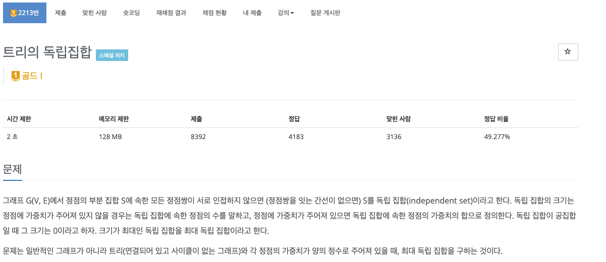 # 백준 2213 - 트리의 독립집합
