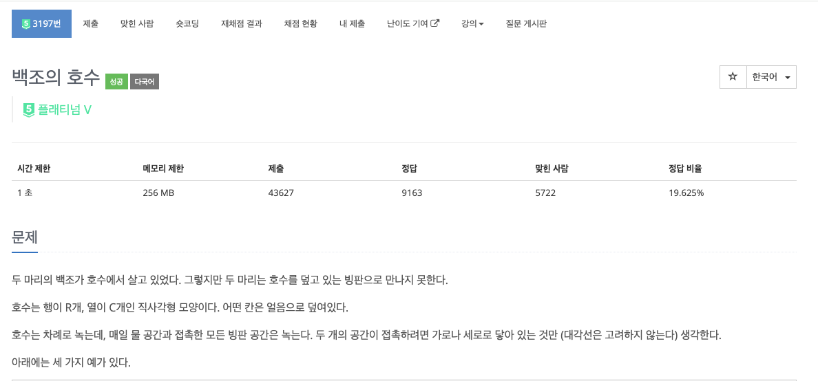 - 문제에서 요구하는 조건은 호수에 얼음이 덮여있다.
