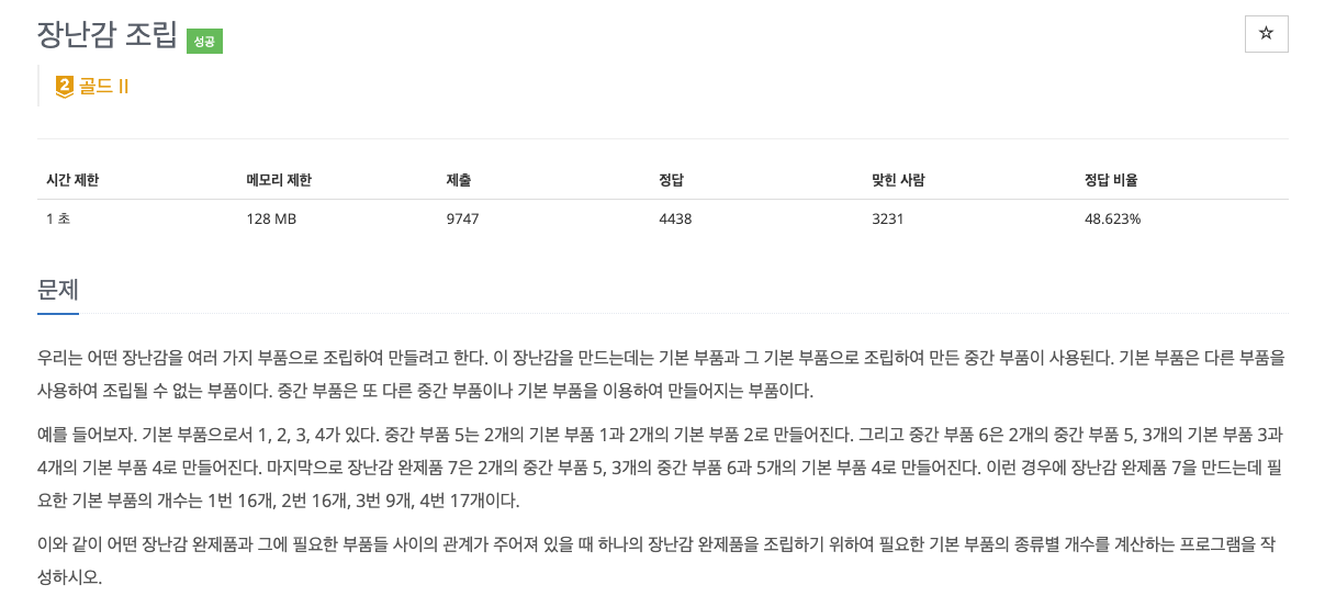 # 백준 2637 - 장난감 조립