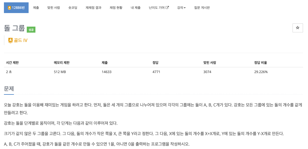 [골드 4] 백준 12886 - 돌 그룹 (파이썬)